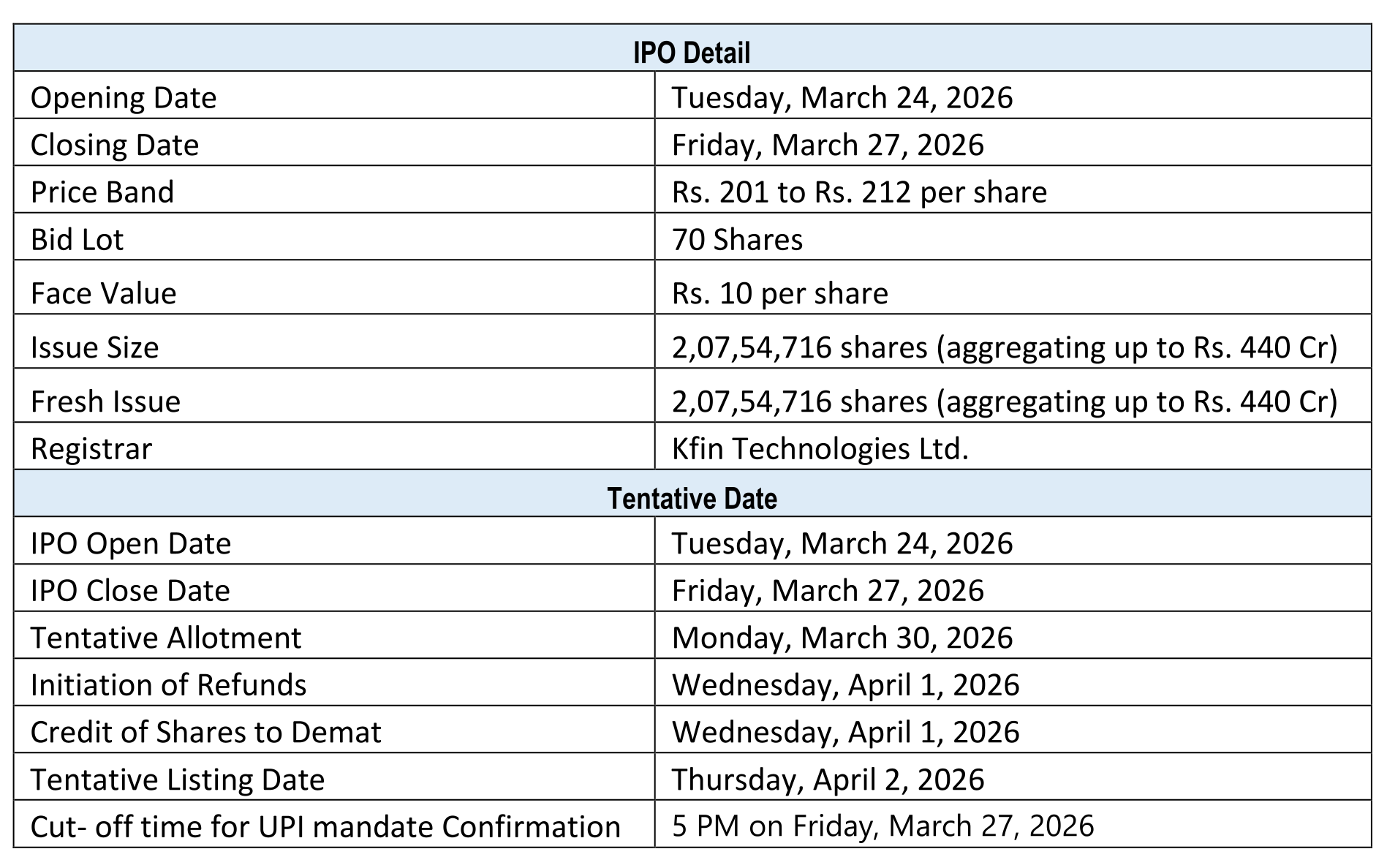 04067162222, 04079611000 acjkel.ipo@kfintech.com https://ipostatus.kfintech.com/